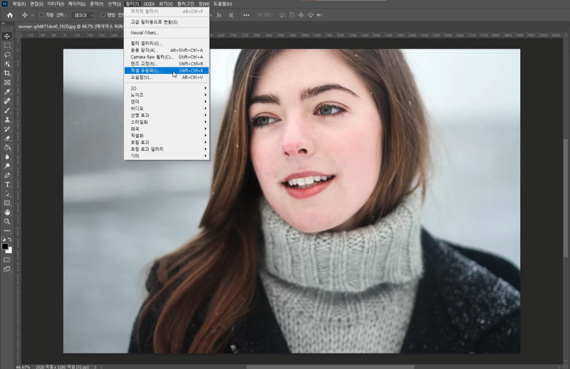 1. 필터 > 픽셀 유동화 클릭하기