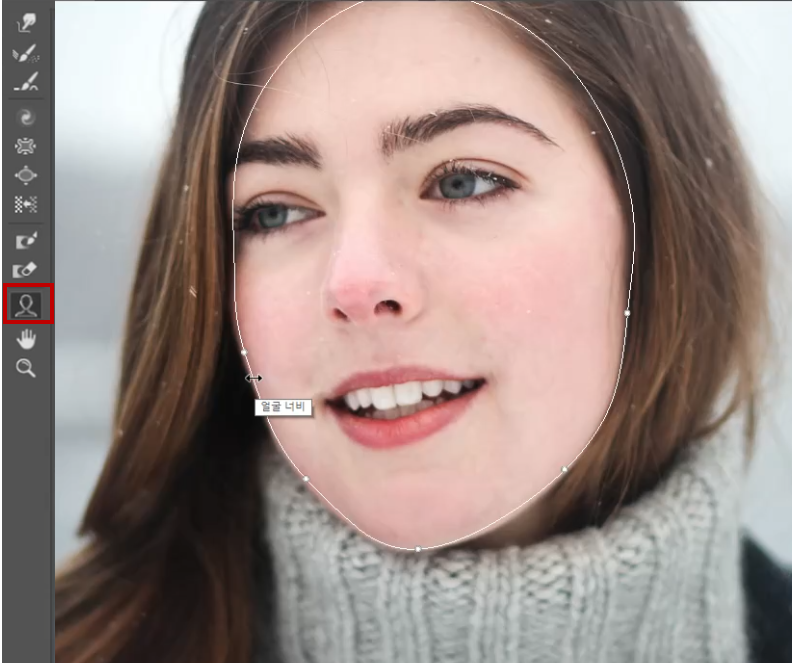 1. 얼굴 도구 클릭한후 편집하고 싶은 부분으로 마우스를 가져가고 클릭후 드래그하여 수정이 가능
